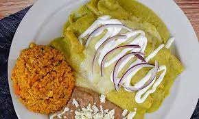 De las consentidas de la gente! no pueden faltar en tu menú de la semana las enchiladas suizas con su guarnición de arroz.